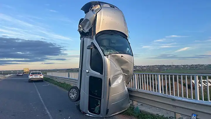 Tekirdağ-Kırklareli yolunda meydana gelen sıra dışı kazada kontrolden çıkan hafif ticari araç köprü üzerindeki bariyerlere çarparak dik şekilde durdu. Kazada sürücü A.Ç. ile yanında bulunan H.D. yaralandı.