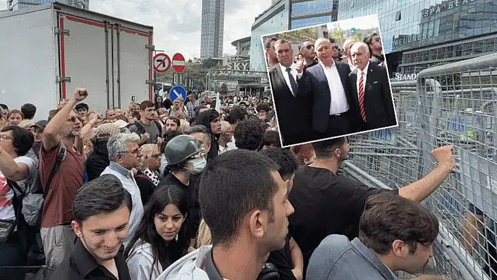 İstanbul Valiliği'nin Beşiktaş, Beyoğlu, Eyüpsultan, Kağıthane, Sarıyer ve Şişli'de gösteri ve yürüyüşleri yasaklamasının ardından polis eşliğinde il başkanlığı önüne gelen Gürsel Tekin, protestolarla karşılandı.