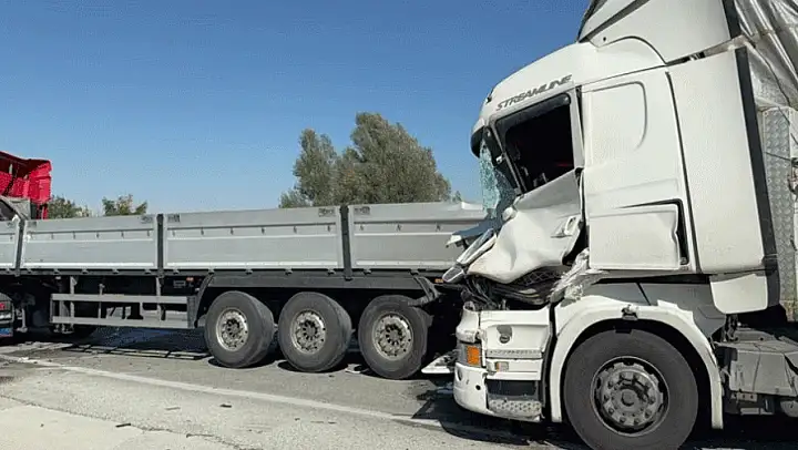 Korkunç kaza: İki tır birbirine saplandı