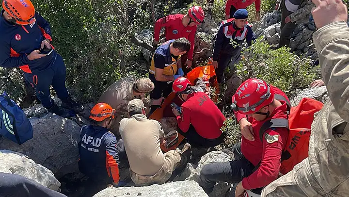 Antalya'nın Serik ilçesinde küçükbaş hayvanlarını otlatmak için çıkan kadın, 1 gün sonra kayalıkları arasındaki yaklaşık 5 metrelik yarıkta bulundu.