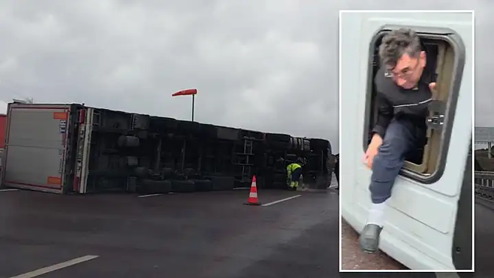 Bursa–İstanbul otoyolunda etkili olan şiddetli fırtına, Orhangazi–Gebze arasındaki bir viyadükte tehlikeli bir kazaya yol açtı. Kuvvetli rüzgârın savurduğu bir tır, viyadük üzerinde devrilerek yolu kapattı.