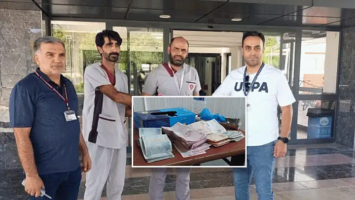 Elazığ Fırat Üniversitesi Hastanesinde bir temizlik personeli, otopark kısmında çalıştığı sırada bulduğu poşet dolusu parayı polise teslim etti.