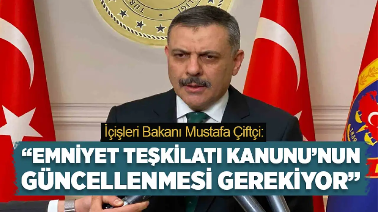 İçişleri Bakanı Mustafa Çiftçi, Emniyet Teşkilatı Kanunu'nun günümüz şartlarına uyum sağlayacak şekilde yeniden düzenlenmesi gerektiğini söyledi.