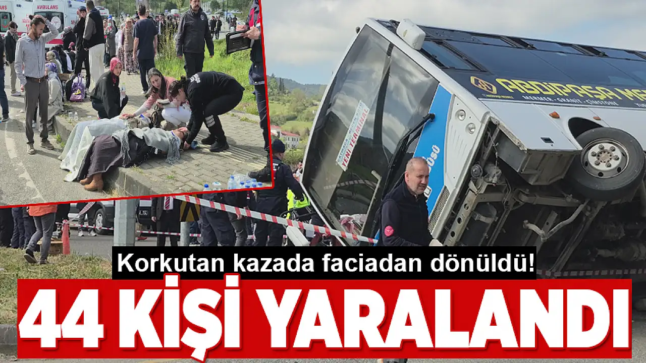 Bartın'da halk otobüsü otomobilin üzerine devrildi: 44 kişi yaralandı