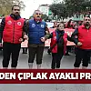 DİSK/Genel-İş’e bağlı 1, 2, 3 ve 9 No’lu şubelerin çağrısıyla bir araya gelen İZENERJİ, İZELMAN, İZFAŞ, EGEŞEHİR ve İZTEK çalışanları, “çıplak ücret” uygulamasına dikkat çekmek için ayakkabılarını çıkararak yürüdü.
