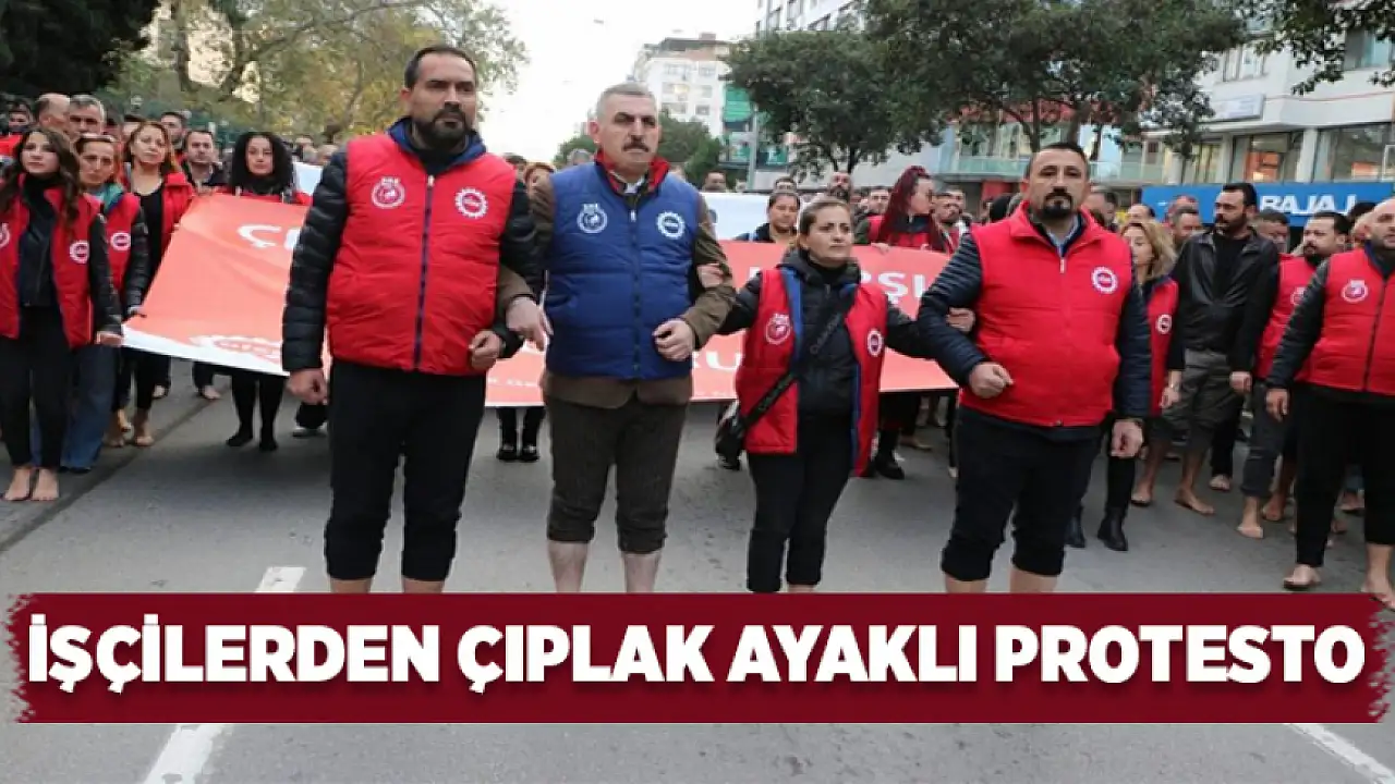 İzmir Büyükşehir Belediyesi'ne bağlı şirketlerde çalışan yüzlerce işçi, aylardır ödenmeyen sosyal haklar, maaş kesintileri ve işten çıkarmaları protesto etmek için sendika binasından Kültürpark'a kadar çıplak ayakla yürüdü.