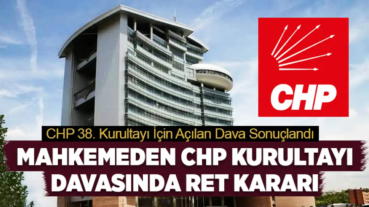 Cumhuriyet Halk Partisi'nin (CHP) 38. Olağan Kurultayı'nın iptali talebiyle açılan dava, Ankara 42. Asliye Hukuk Mahkemesi tarafından reddedildi. Mahkeme, davanın konusuz kalması' ve aktif husumet yokluğu gerekçeleriyle karar verilmesine yer olmadığına hükmetti.