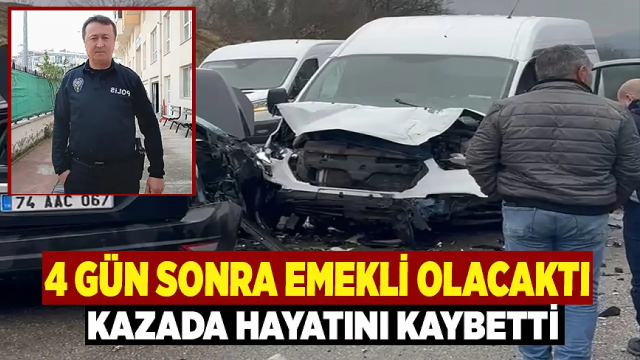 Bartın'da emekliliğine yalnızca dört gün kala görev arkadaşlarıyla vedalaşan bir polis memuru, talihsiz bir trafik kazasında yaşamını yitirdi.