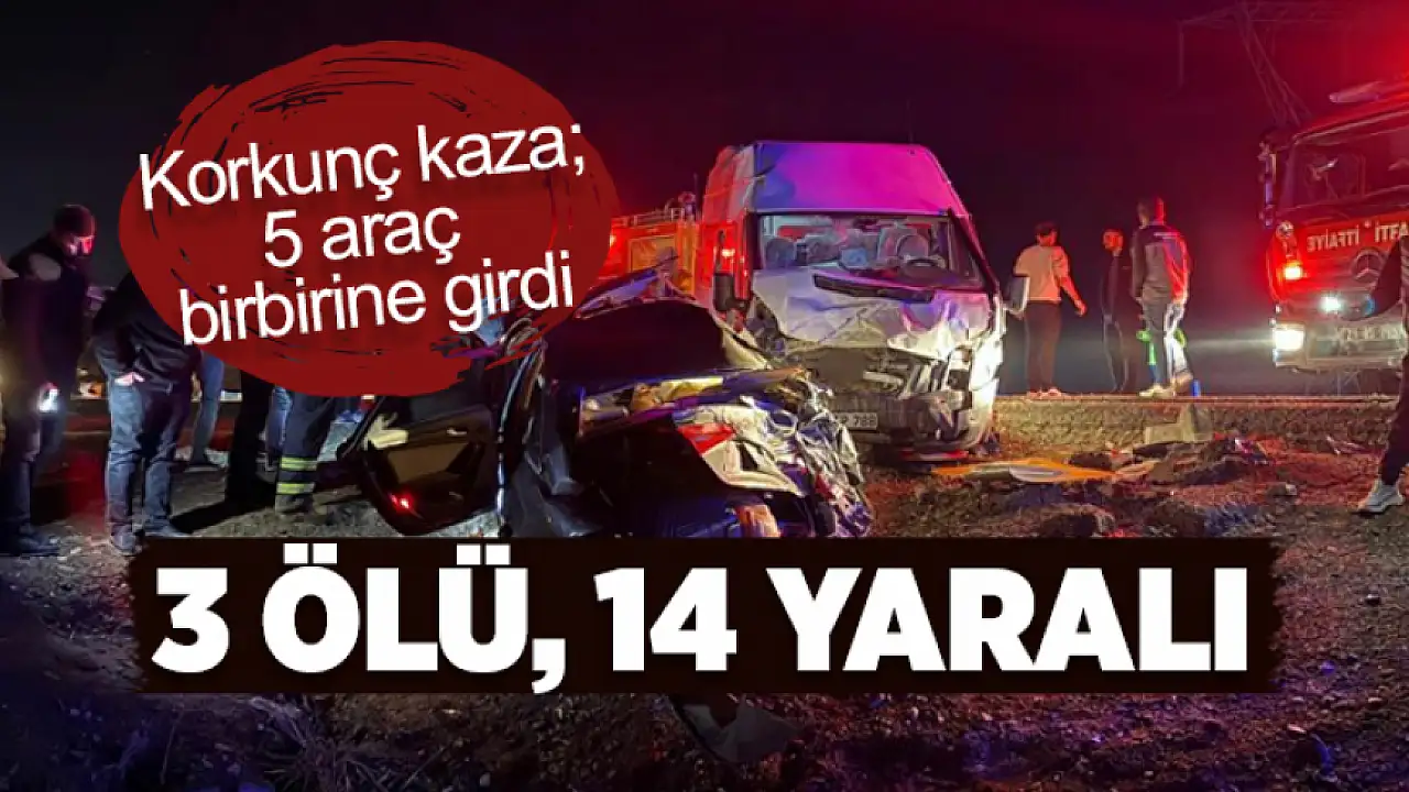 Diyarbakır-Batman karayolunda 5 aracın karıştığı zincirleme trafik kazasında 3 kişi hayatını kaybetti, 14 kişi yaralandı.