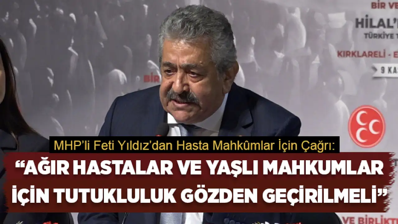 MHP Genel Başkan Yardımcısı Feti Yıldız, ağır hastalığı bulunan, engelli veya ileri yaşlardaki mahkumların cezaevi koşullarında tutulmasının demokratik hukuk devletinin temel ilkeleriyle bağdaşmadığını belirtti.