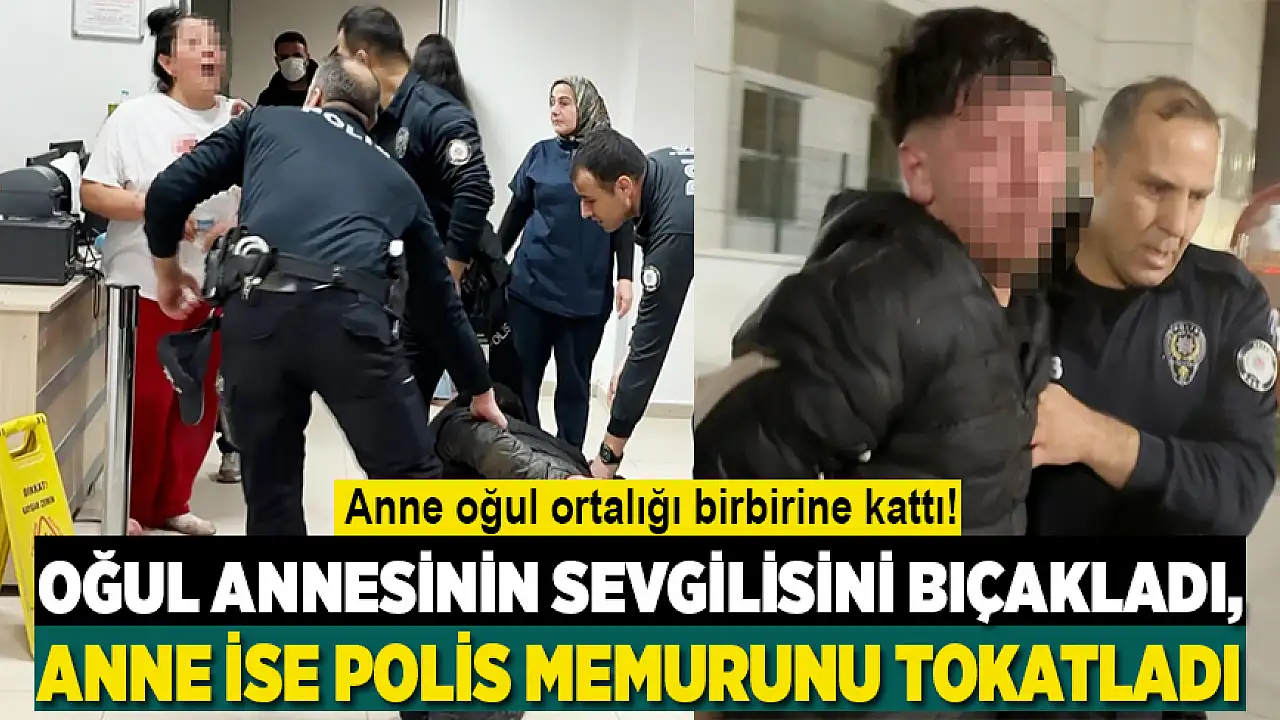 Aksaray'da 20 yaşındaki genç, annesinin sevgilisini göğsünden ve sırtından bıçaklayarak ağır yaraladı. Gözaltına alınan oğlunun yanına gelen anne ise, hastanede saldırdığı polis memurunu tokatladı.
