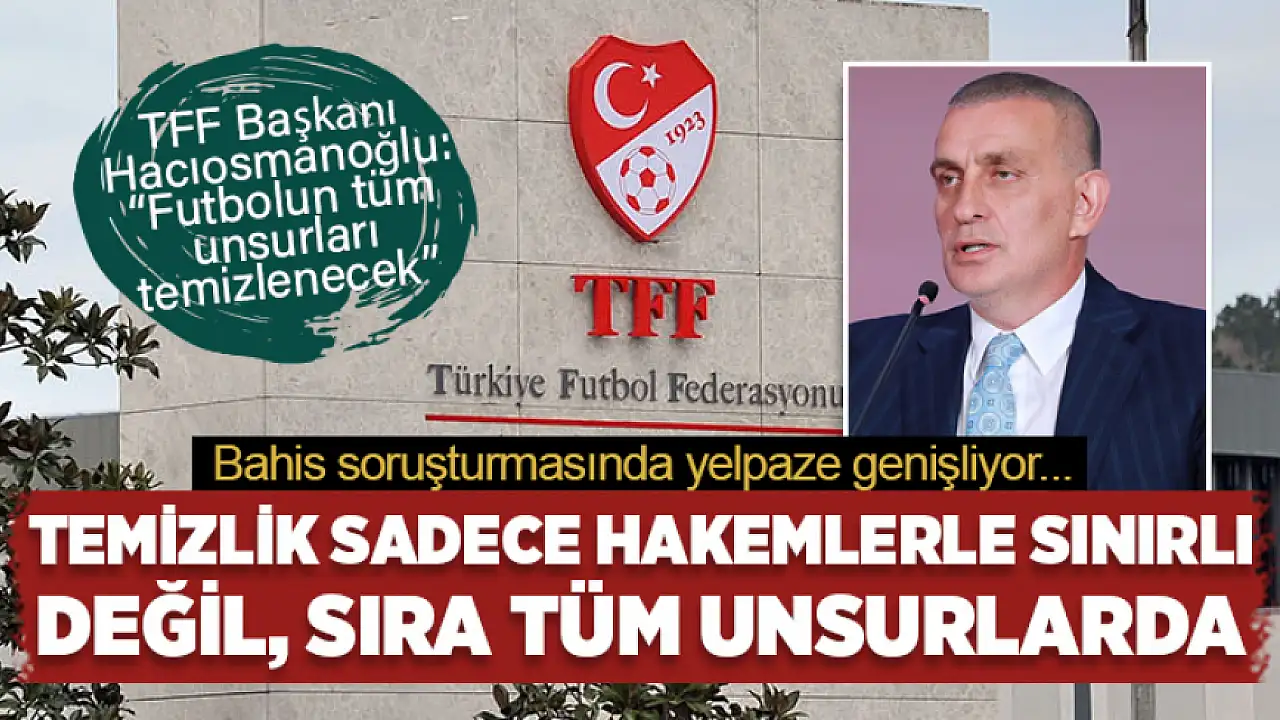 Hacıosmanoğlu, soruşturmanın hakemlerle başladığını, şimdi ise futbolcular, teknik direktörler ve diğer tüm futbol çalışanlarını kapsayacak şekilde genişletildiğini duyurdu.